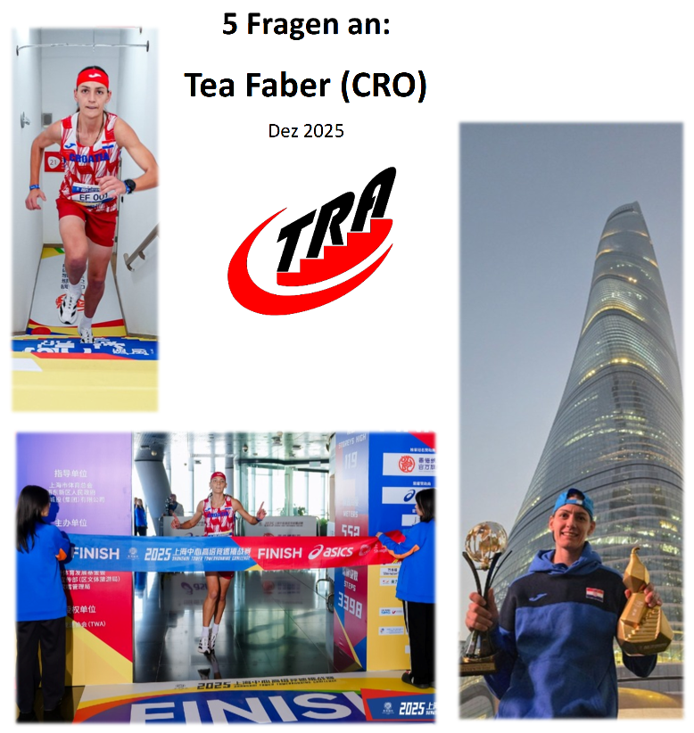 Nach dem Abschluss der Towerrunning Tour 2025 haben wir den Champions 5 Fragen zu Ihrer Saison gestellt. Heute beginnen wir mit der Siegerin Tea Faber aus Kroatien. Sie gewann vor einem Jahr in ihrem ersten Treppenlauf gleich den Wettkampf in Shanghai. Ein Jahr später hat sie einen unglaublichen Erfolgslauf hingelegt und holt sich in Shanghai den Sieg im Gesamtweltcup ab: